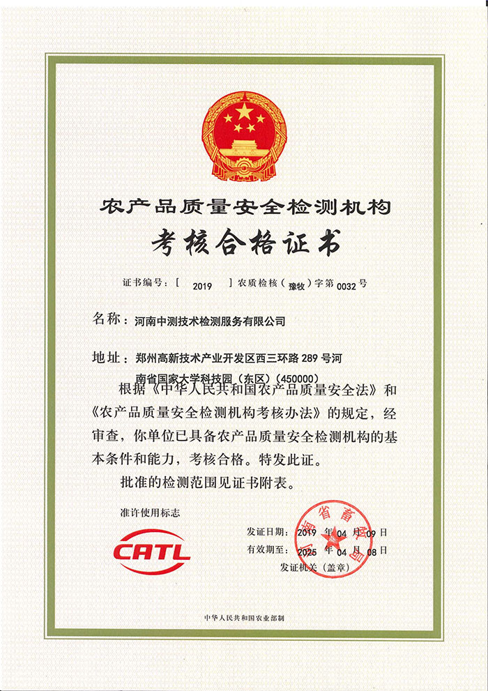 中測(cè)檢測(cè)先后取得檢測(cè)機(jī)構(gòu)資質(zhì)認(rèn)定證書(shū)(CMA)、國(guó)家實(shí)驗(yàn)室認(rèn)可(CNAS)、農(nóng)產(chǎn)品檢測(cè)機(jī)構(gòu)資質(zhì)(CATL)、質(zhì)量管理體系認(rèn)證證書(shū)、職業(yè)健康安全管理體系認(rèn)證等證書(shū)?,F(xiàn)已通過(guò)資質(zhì)認(rèn)證參數(shù)8000多項(xiàng),涵蓋食品檢測(cè)、環(huán)境檢測(cè)、公共衛(wèi)生檢測(cè)、作業(yè)場(chǎng)所檢測(cè)、水質(zhì)檢測(cè)、空調(diào)通風(fēng)系統(tǒng)衛(wèi)生檢測(cè)、防雷設(shè)施檢測(cè)、化妝品檢測(cè)、日化產(chǎn)品檢測(cè)、飼料檢測(cè)、藥品殘留檢測(cè)、農(nóng)獸藥殘留檢測(cè)、放射性檢測(cè)、化工原料及產(chǎn)品檢測(cè)、基因檢測(cè)、特種設(shè)備檢測(cè)等的檢驗(yàn)檢測(cè)工作。